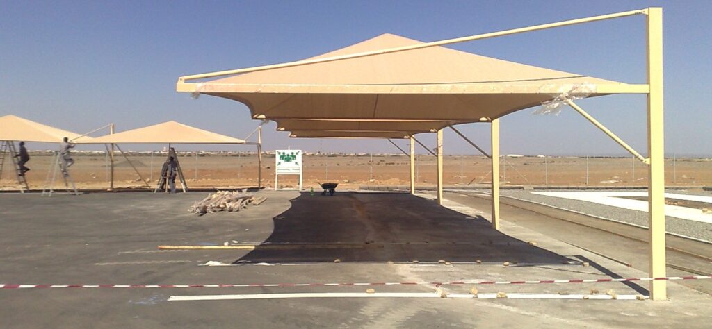مظلات سيارات، حدائق، مدارس، مسابح، ومظلات متحركة حسب الحاجة.